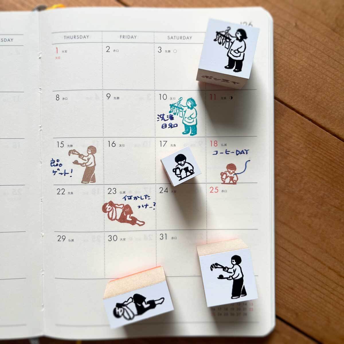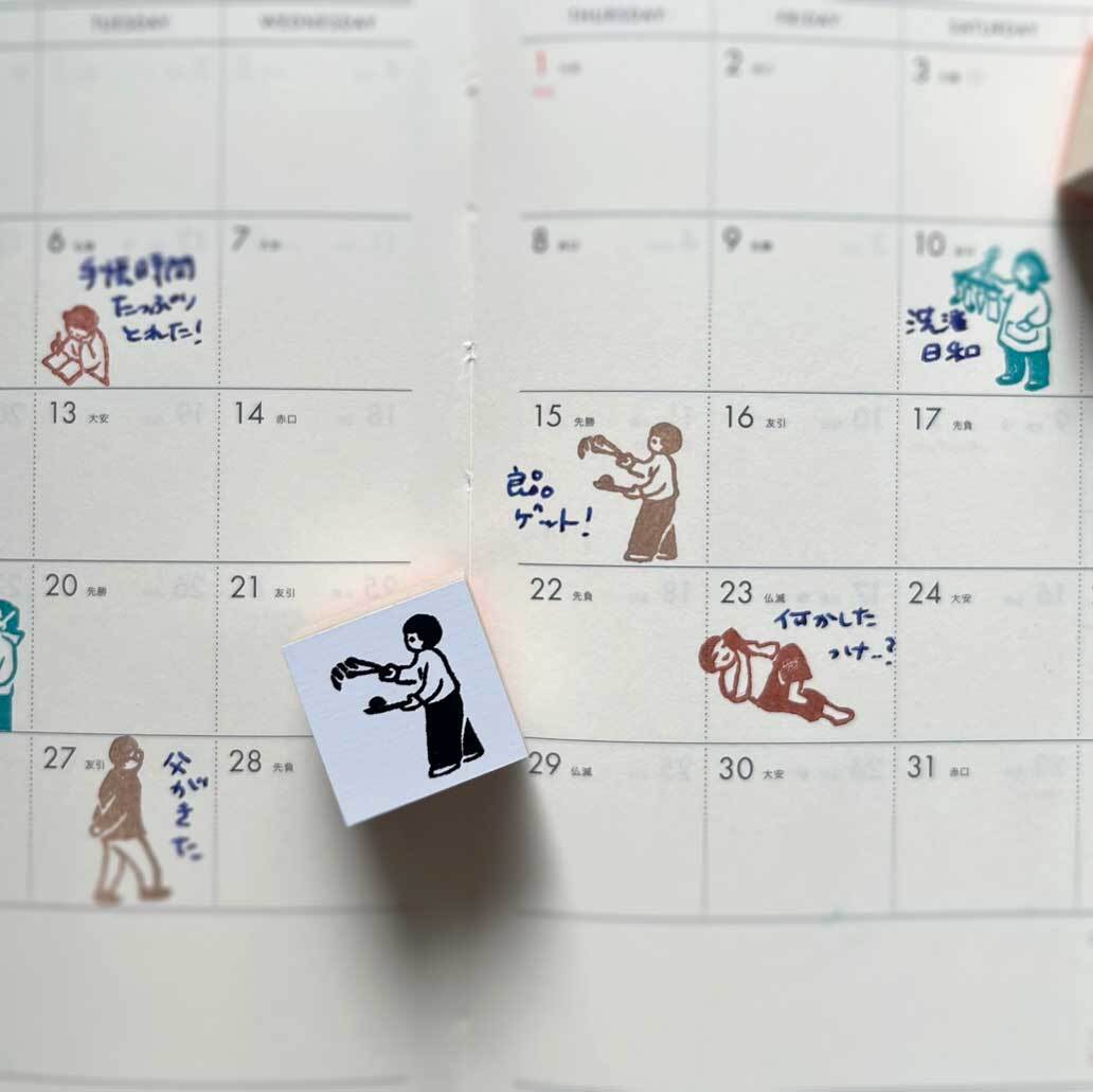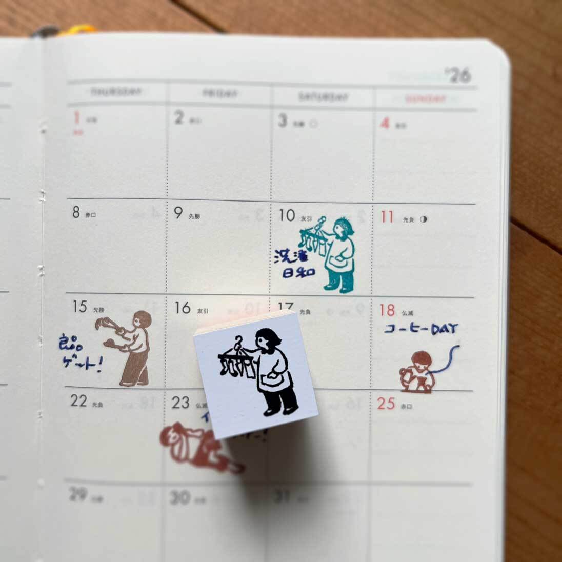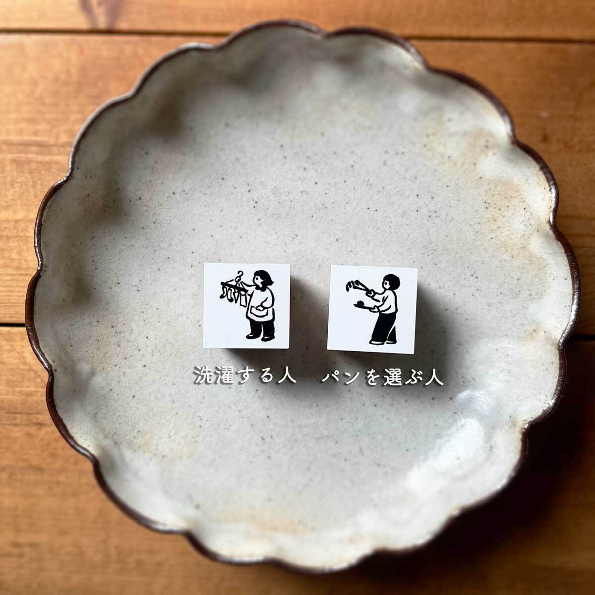 生活はんこ|パンをとる人・洗濯を干す人|小